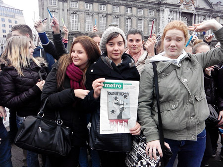 Sur la place Saint-Lambert à Liège, théâtre d'un acte de barbarie il y a de cela 3 ans, les élèves du troisième degré du professionnel ont rendu hommage aux victimes du journal "Charlie Hebdo" et plus largement à toutes les victimes du terrorisme.